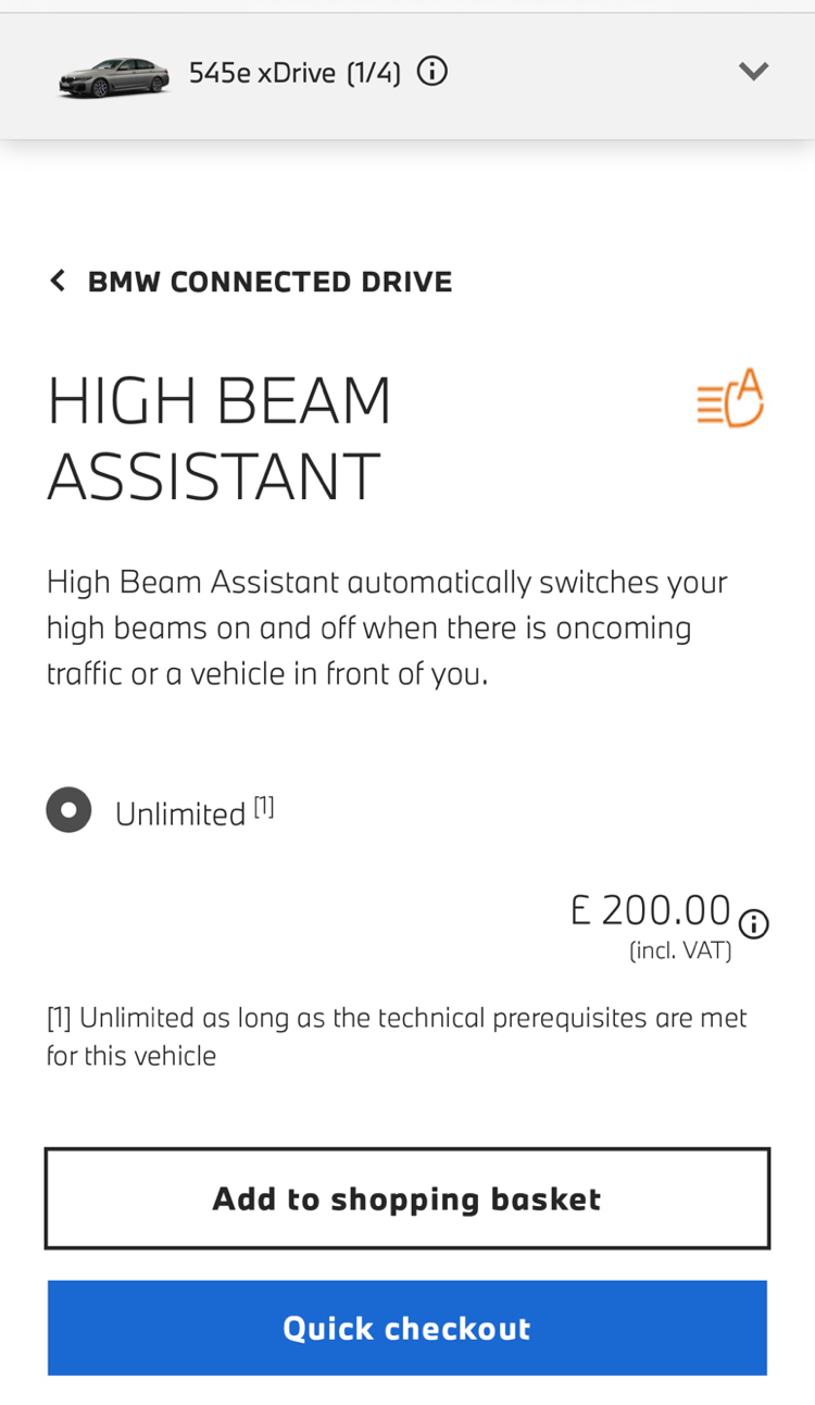 Just picked-up a demo G30 545e Xdrive. It has the high-beam assist hardware and BMW want €225 to turn it on.